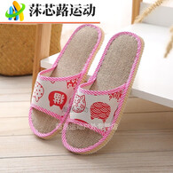 谷舰沐春夏家居亚麻凉拖鞋室内软底居家男女地板酒店静泡沫底一次性 粉猫 男款均码适合40-43