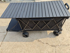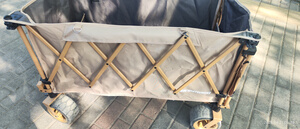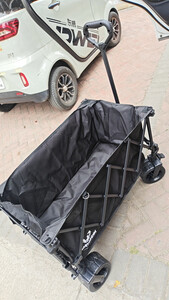 质量特别好,特大。平常拉个快递,周六周日带孩子出门玩的时候,带了好多东西,以前没有小车的时候,都是每个人胳膊上挂好多东西十分狼狈,现在有了小车,东西可以放在车子里,特别方便。我还买了一个个小桌板,这样放露营的水杯和食物也特别好,很满意。