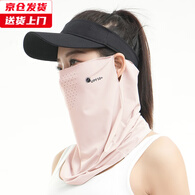 槿城防晒面纱女夏季透气冰丝遮脸面罩骑行遮阳防紫外线挂耳面巾FS121 【粉色】升级带孔款