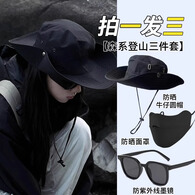 偶森登山帽西部牛仔帽渔夫帽女透气防晒户外露营2024新款夏遮阳帽子男 户外速干/石墨黑/帽子+面罩+墨镜