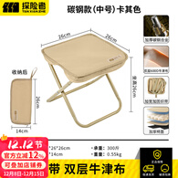 探险者折叠椅马扎凳便携板凳户外折叠椅子徒步登山公园野餐迷你凳 中号卡其手包折叠凳(双层牛津布)