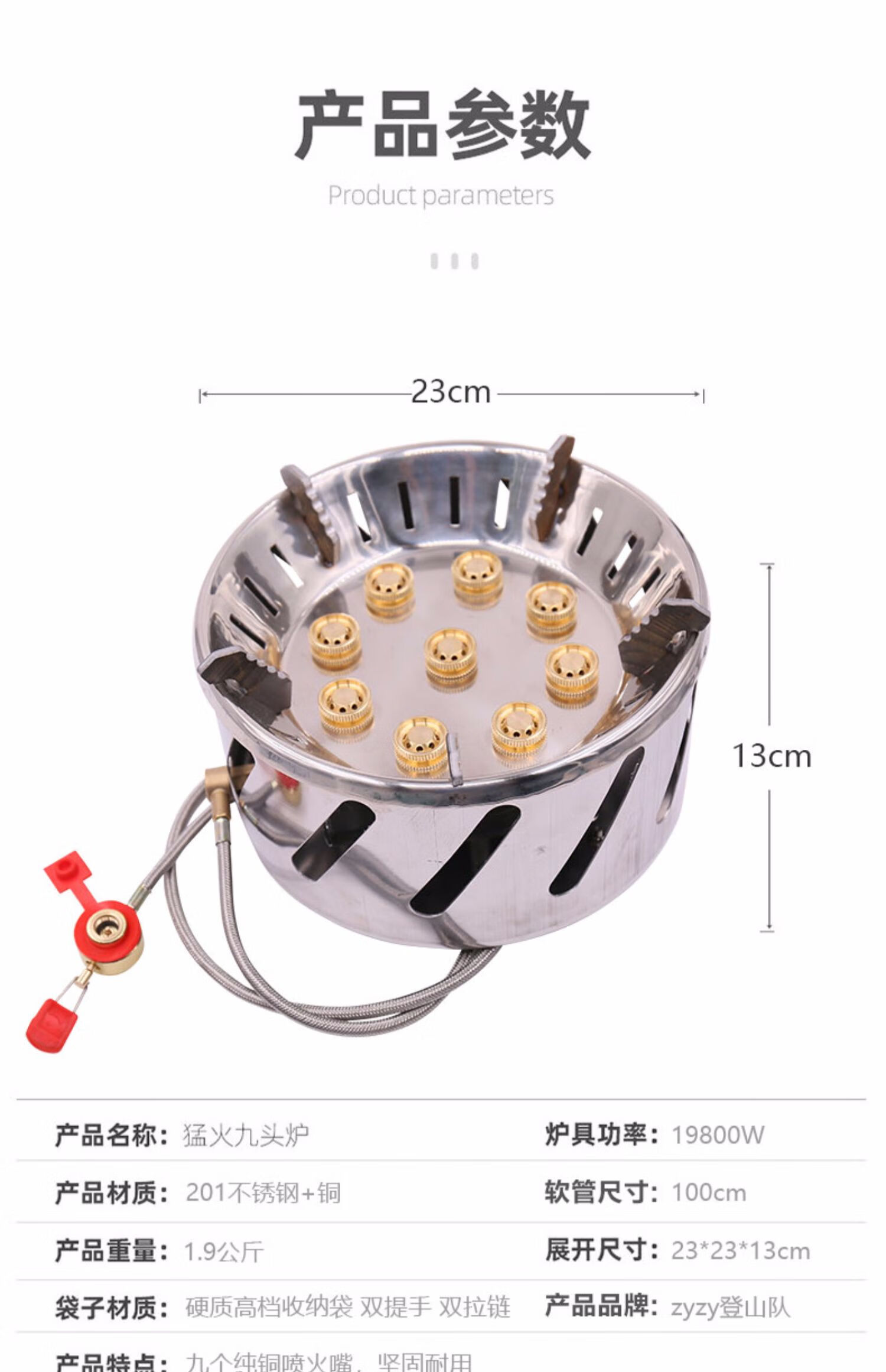 登山队9头户外炉具zyzy大功率防风猛火便携卡式野餐露营七星灶炊 九头炉标配