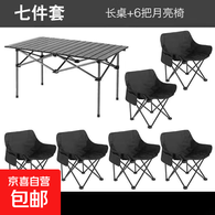 户外多功能家用凳子户外桌椅套装躺椅便携式带靠背休闲宿舍折叠桌 【七件套】120cm黑桌+6把低背黑月亮椅