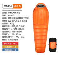 WINGACE翼士羽绒睡袋可拼接木乃伊露营睡袋徒步骑行房车自驾游露营装备 MD400-橘-M