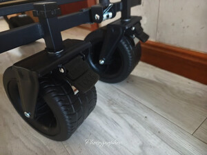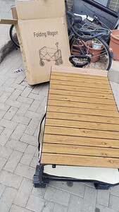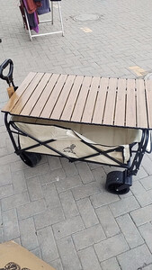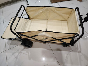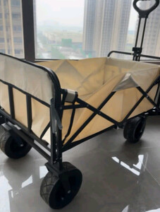 买回来就装上了,感觉组装很方便,跟客服学会了固定前轮。把蛋卷桌铺上就能当饭桌用了。很简单。轮子比较宽大。推拉都很轻快。钢管也比较厚实。适合户外活动用。一分钱一分货。自己用就买好的。