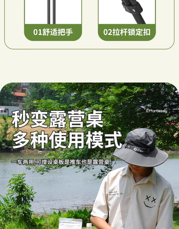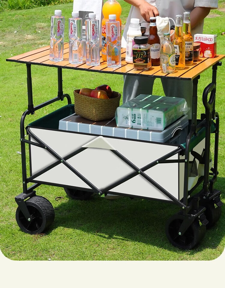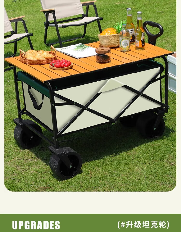 LZJV露营车折叠推车带桌板可坐人躺遛娃户外营地野餐车升降 折叠桌子+大号坦克轮