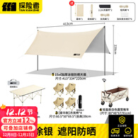 探险者天幕户外露营超大防晒防风防水银胶遮阳棚穹顶沙滩天幕野餐 15㎡淡黄天幕+月亮椅套装+推车