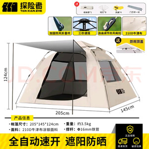 探险者全遮光黑胶帐篷户外野营过夜露营速开便捷装备全套2-3人带充气垫 【5-8人】防晒帐篷+天幕二合一(露营套餐)