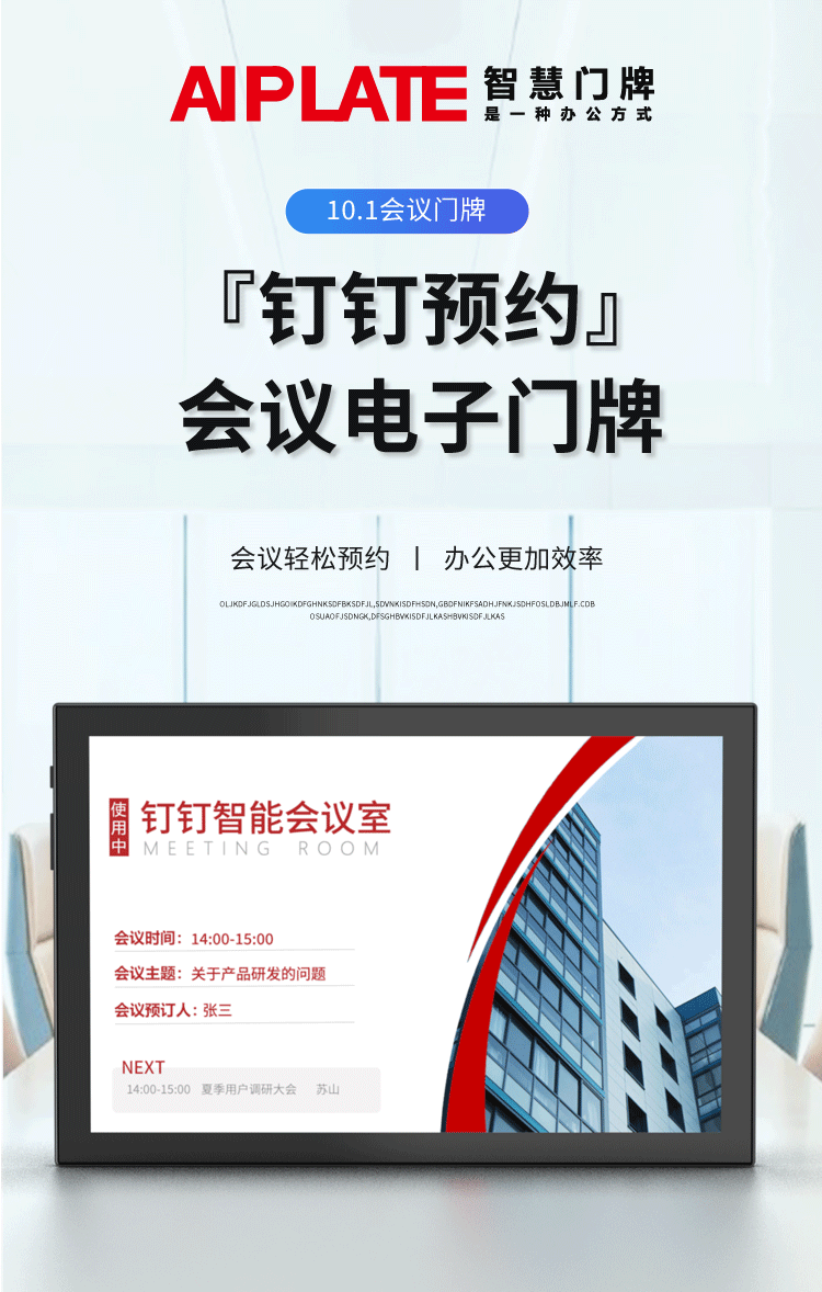 AIPLATE10.1寸钉钉智能会议室门牌会议室预约屏钉钉会议信息屏插220V电源连WIFI即可使用钉钉电子门牌 220V供电+wifi连网(8字款) 门牌+对接钉钉智能会议室(1年授权费)