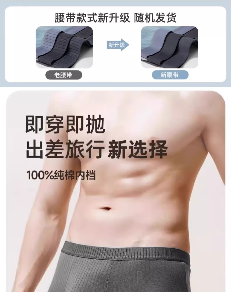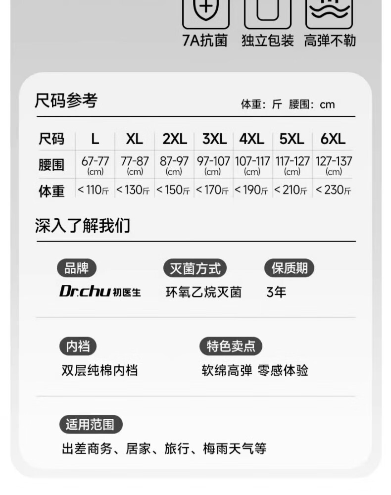 初医生一次性内裤男士款平角四角裤旅行用品日抛免洗四角大码短裤灭菌级 3条【蓝+灰+卡其】7A抗菌EO灭菌 6XL【210-230斤】