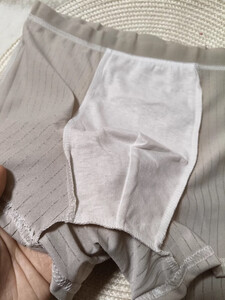 腰部是加宽的比之前买的一次性内裤舒服多了,条纹的布料很有弹性,裆部是双层纯棉的挺推荐的
