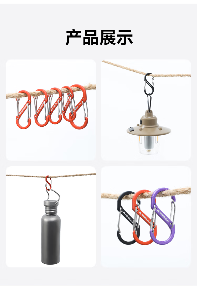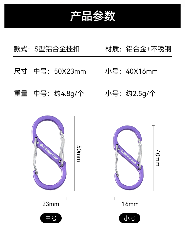 拓路者S型铝合金挂扣户外多功能8字快挂登山背包扣不锈钢挂钥匙扣安全扣 梦幻紫小号4个装 无规格