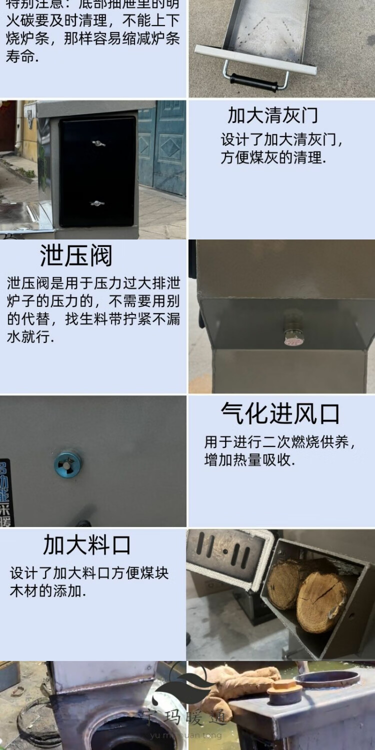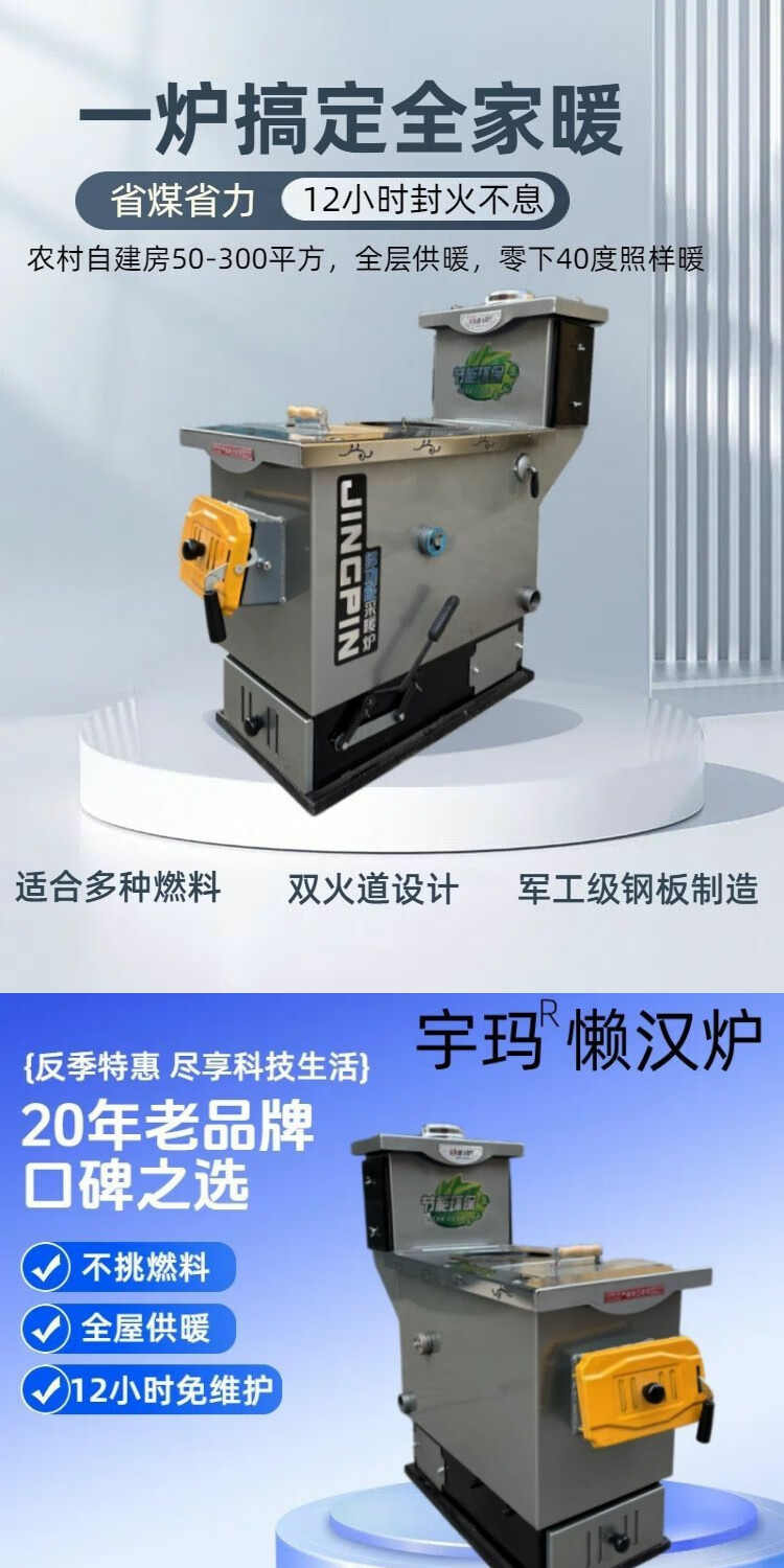 宇玛懒汉锅炉采暖炉地暖农村两用懒汉锅炉家用最新款暖气炉燃煤烧柴 高箱懒汉锅炉【超大储煤仓】 165平#特制加厚款+不挑燃料