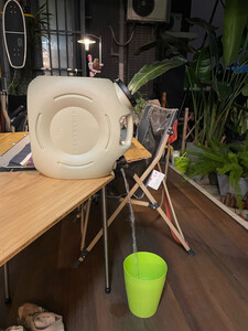 这个大水桶材质挺好的,样子也很可爱,出去露营就带这么一个可以满足一天的用水需求,洗洗菜做做饭喝喝水都够了,主要放置方便,带一个小龙头,设计很巧妙