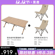 黑鹿(BLACKDEER)木纹铝合金蛋卷桌 户外露营折叠桌椅 便携式露营烧烤野餐折叠桌子 木纹蛋卷桌120款+宅宅椅玄米白*2