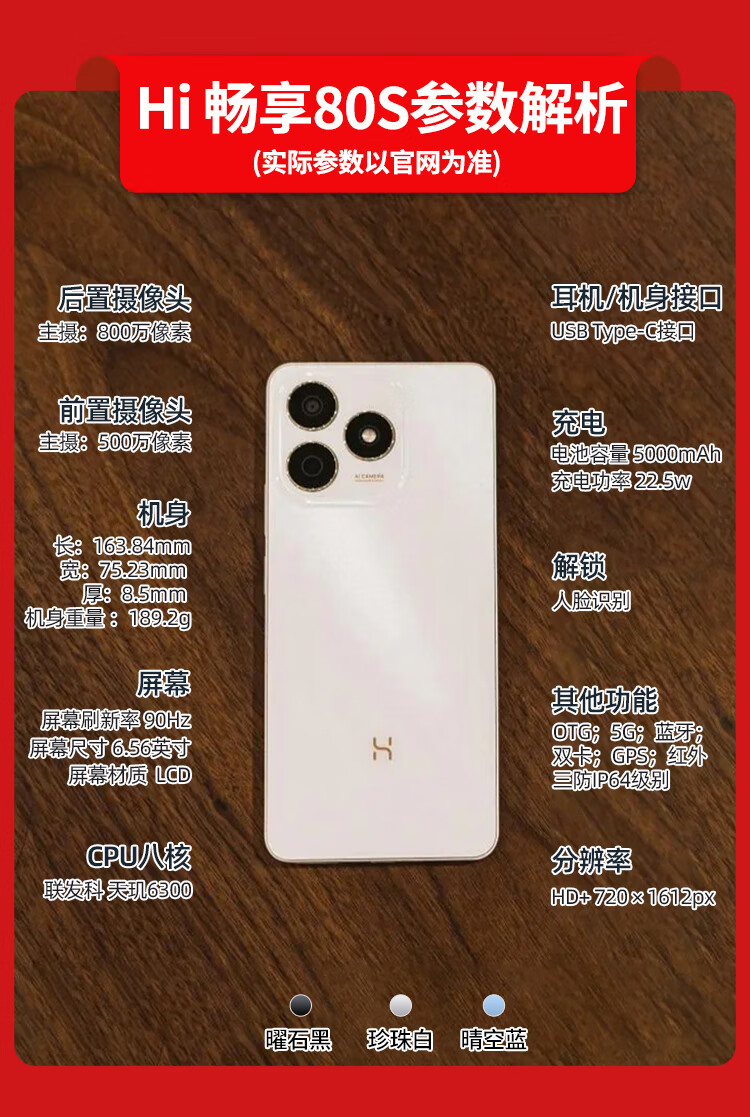 华为(HUAWEI)手机80新机2025上市hi畅享80S原装正品5G【24期免息】hi畅享智选系列老人机备用机5000mAh大电池 珍珠白6G+128G 【官方标配】+180天只换不修