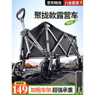 暴走怪兽户外露营车折叠小推车拖车野餐车大容量聚拢收纳摆摊出行装备 【迷你聚拢款】黑色150L【实心万向轮】