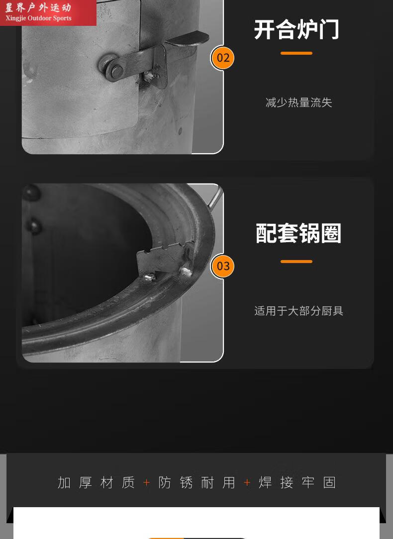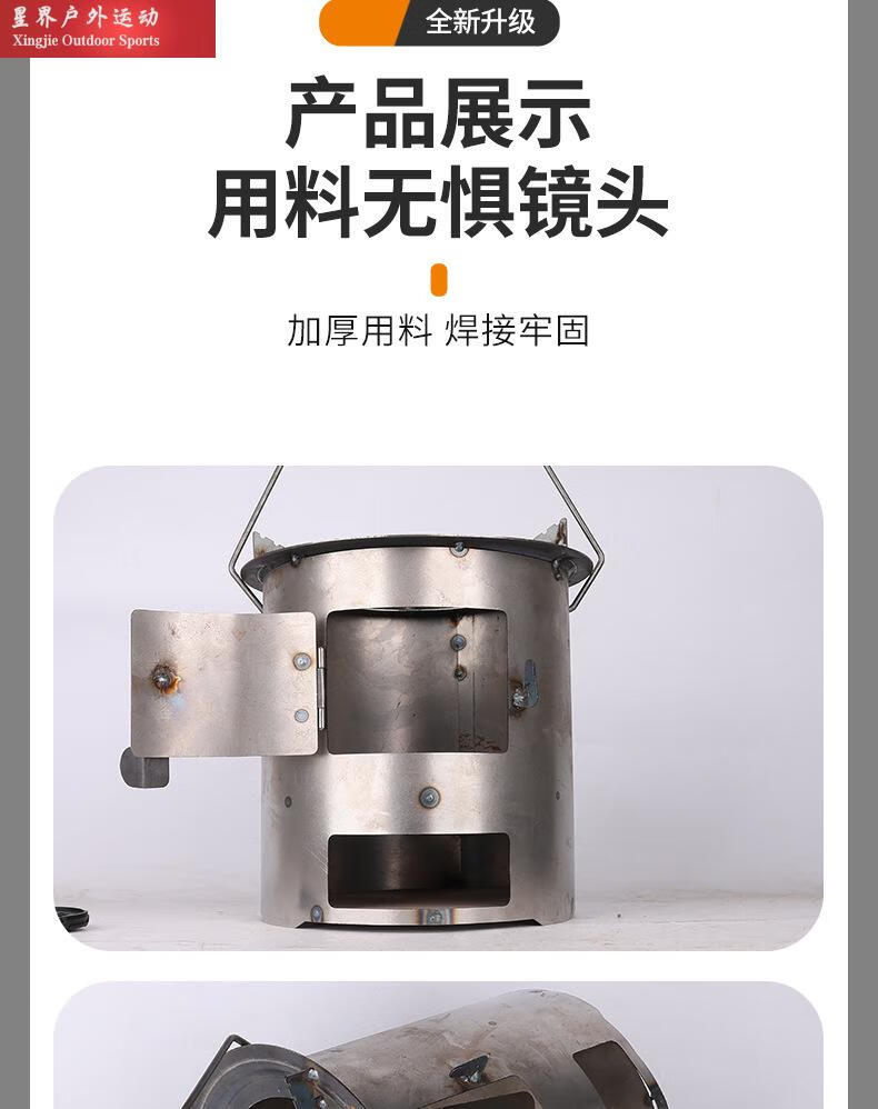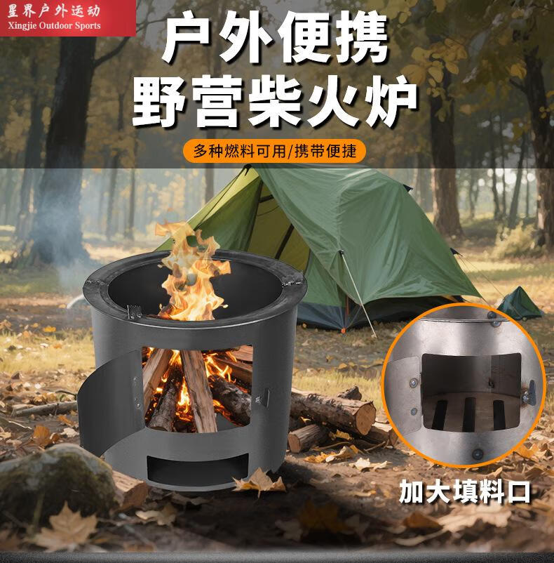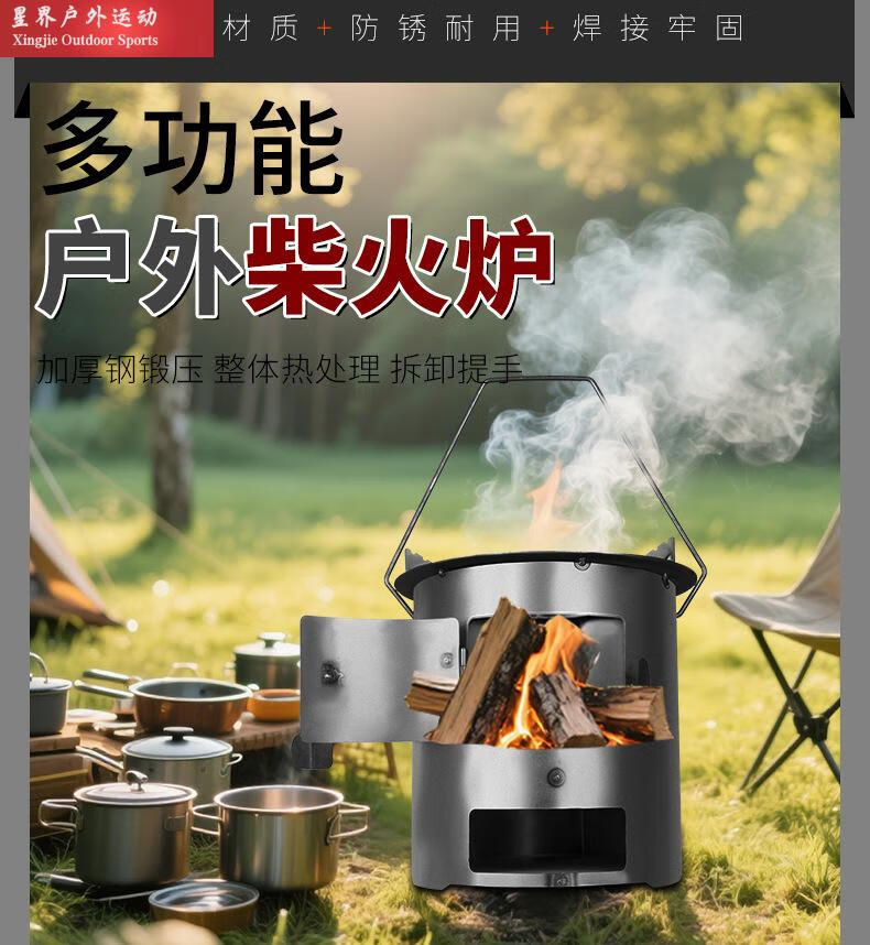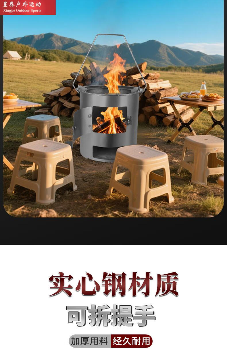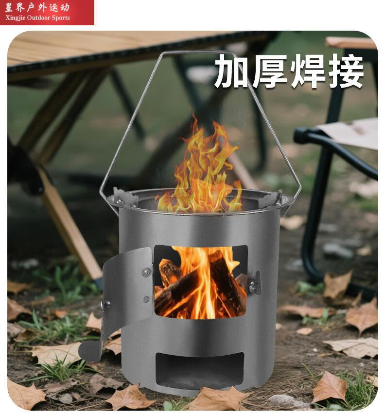 胖东来户外柴火炉炭火炉餐炉具野炊便携式碳火炉子烧水茶炉露营旅游用品 特大号内胆