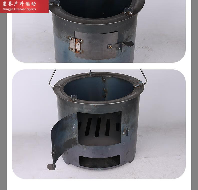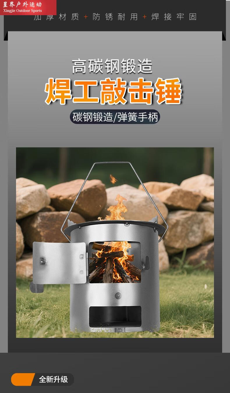 山头林村加厚柴火火炉围炉家用煮茶取暖木柴户外便携多功能木炭烧烤 特厚 (小号)直径22cm-高20cm