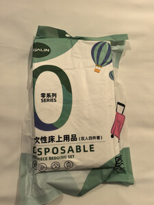 打开包装,没有任何异味,面料摸起来柔软舒适,贴在皮肤上完全没问题。床单、被套、枕套尺寸都恰到好处,铺在床上非常平整美观。做工精细,走线均匀,没有线头。对于经常出差或者旅行的人来说,简直是必备好物,干净卫生,用起来超放心。在京东上能买到这么优质的一次性四件套,太满意了,强烈推荐给大家!