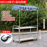 卫辞夜市烤肠面筋冰粉摆摊小推车可折叠桌子移动便携网红地摊小吃车 58X118cm四寸轮(仅架子)蓝白雨棚