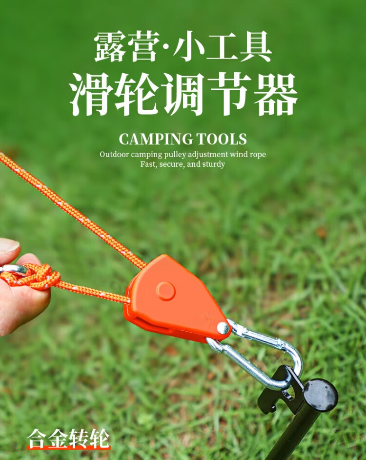 原始人天幕风绳拉紧器户外野营帐篷防风绳反光拉绳快速调节调节扣 【滑轮款】橘色
