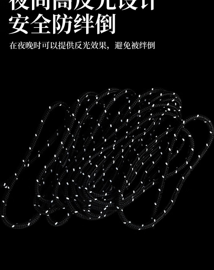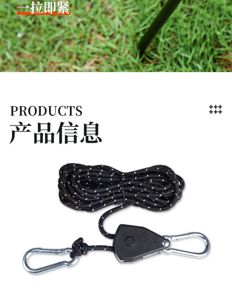 凯路德户外露营天幕滑轮拉紧器帐篷拉绳防风绳滑轮加粗反光绳子套装 【4条】黑色4M-4MM+地钉