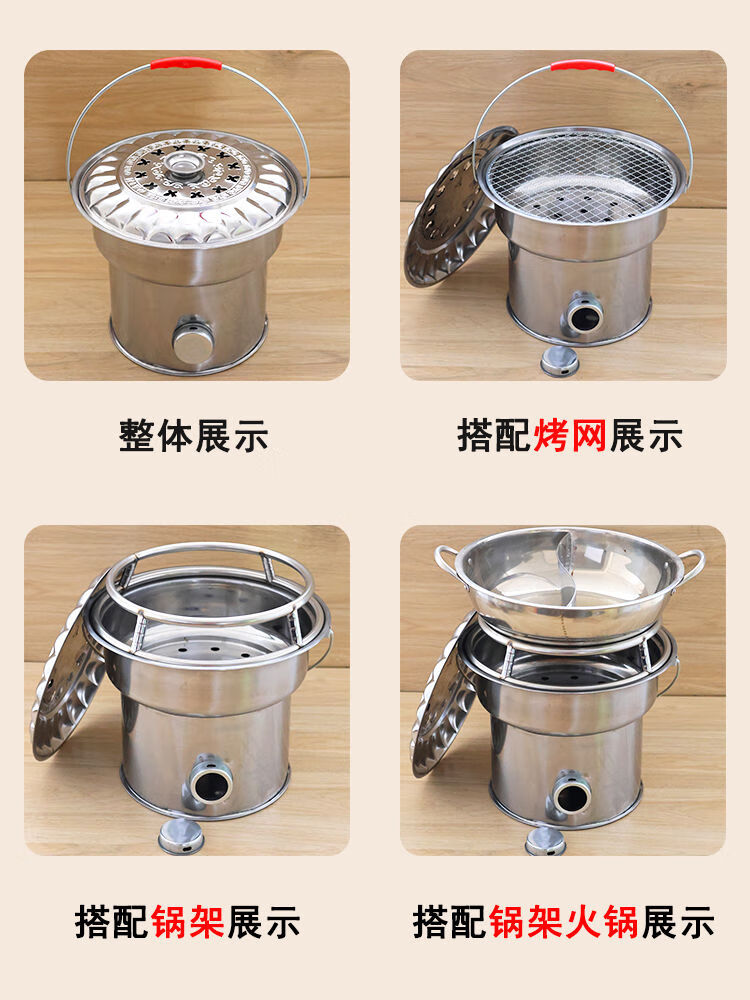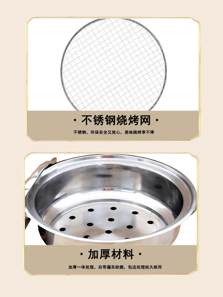新款不锈钢炭火炉加厚加高炭炉木炭盆取暖炉火炉户外烧烤架子 新款炭炉+普通烤网+2斤木炭