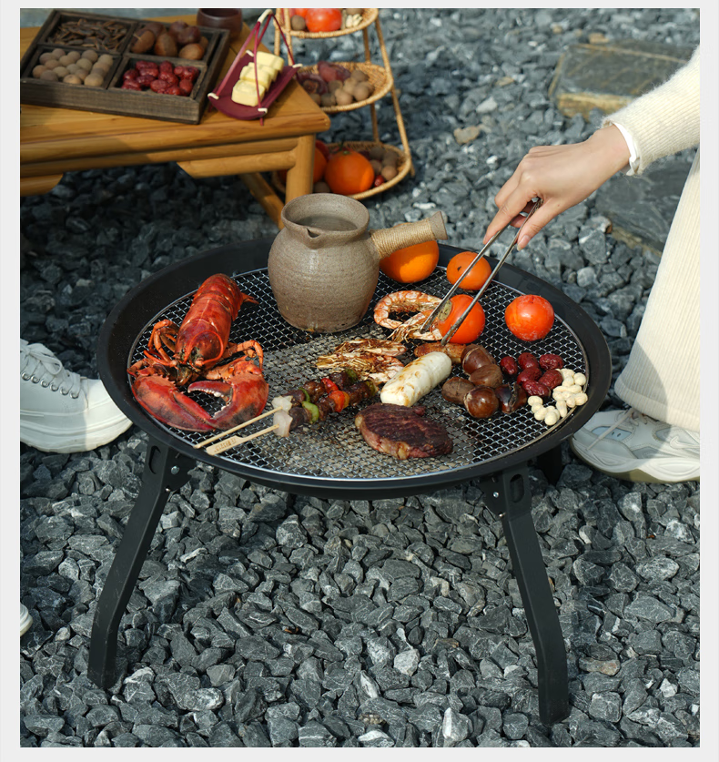 赟娅围炉煮茶家用室内烧烤炉户外碳烤炉烧烤架多功能折叠围炉取暖烤火 折叠围炉【无茶壶】六件套+桌板