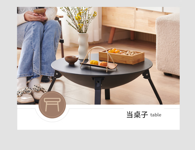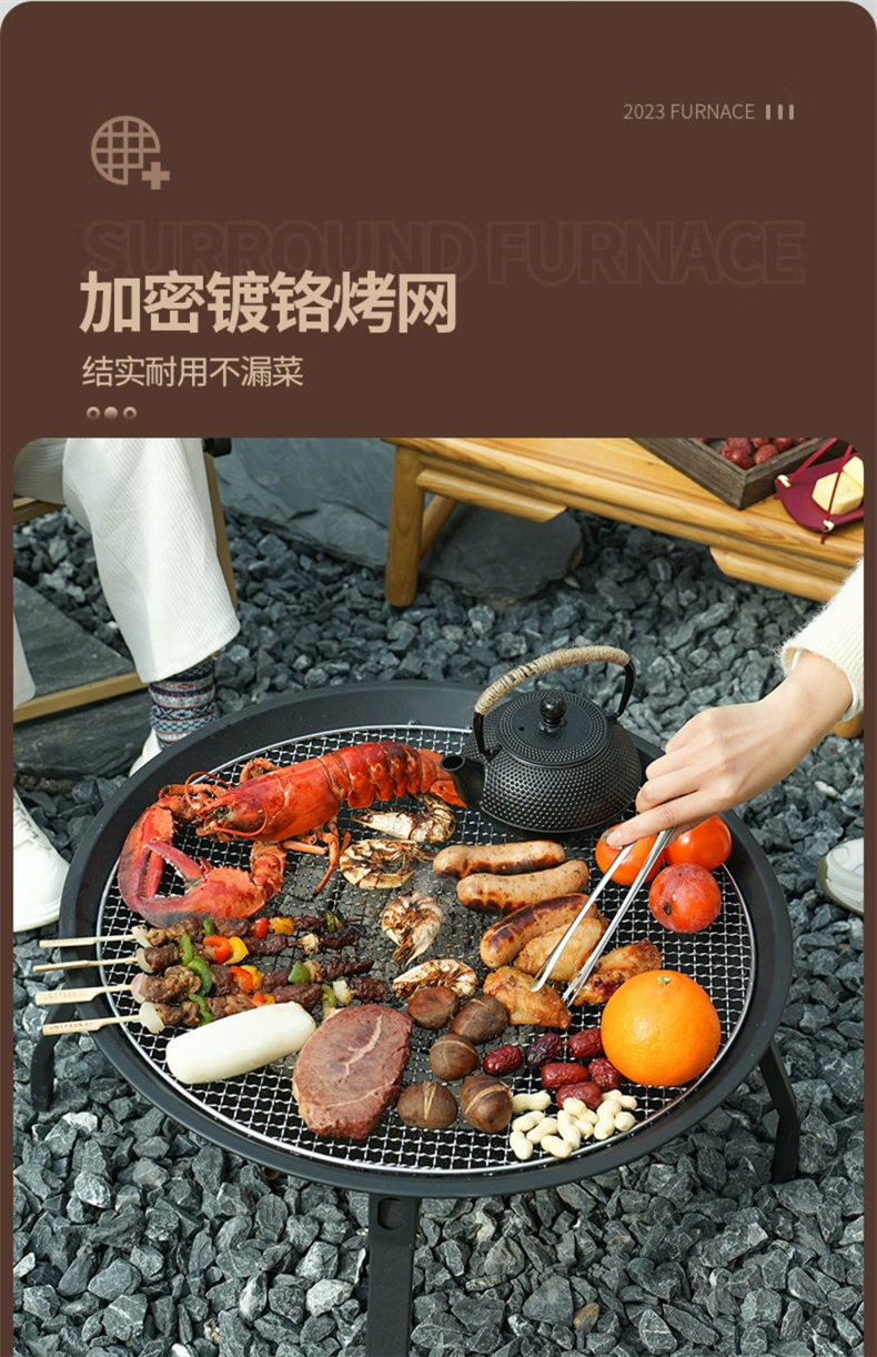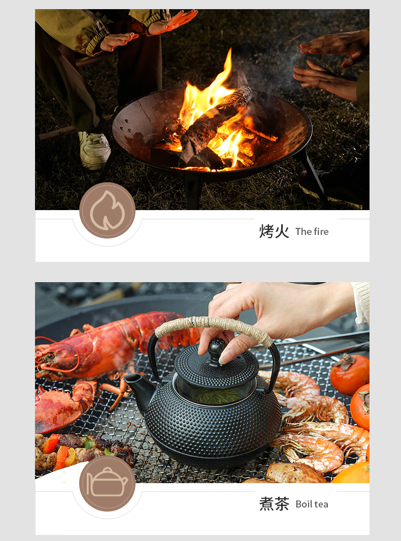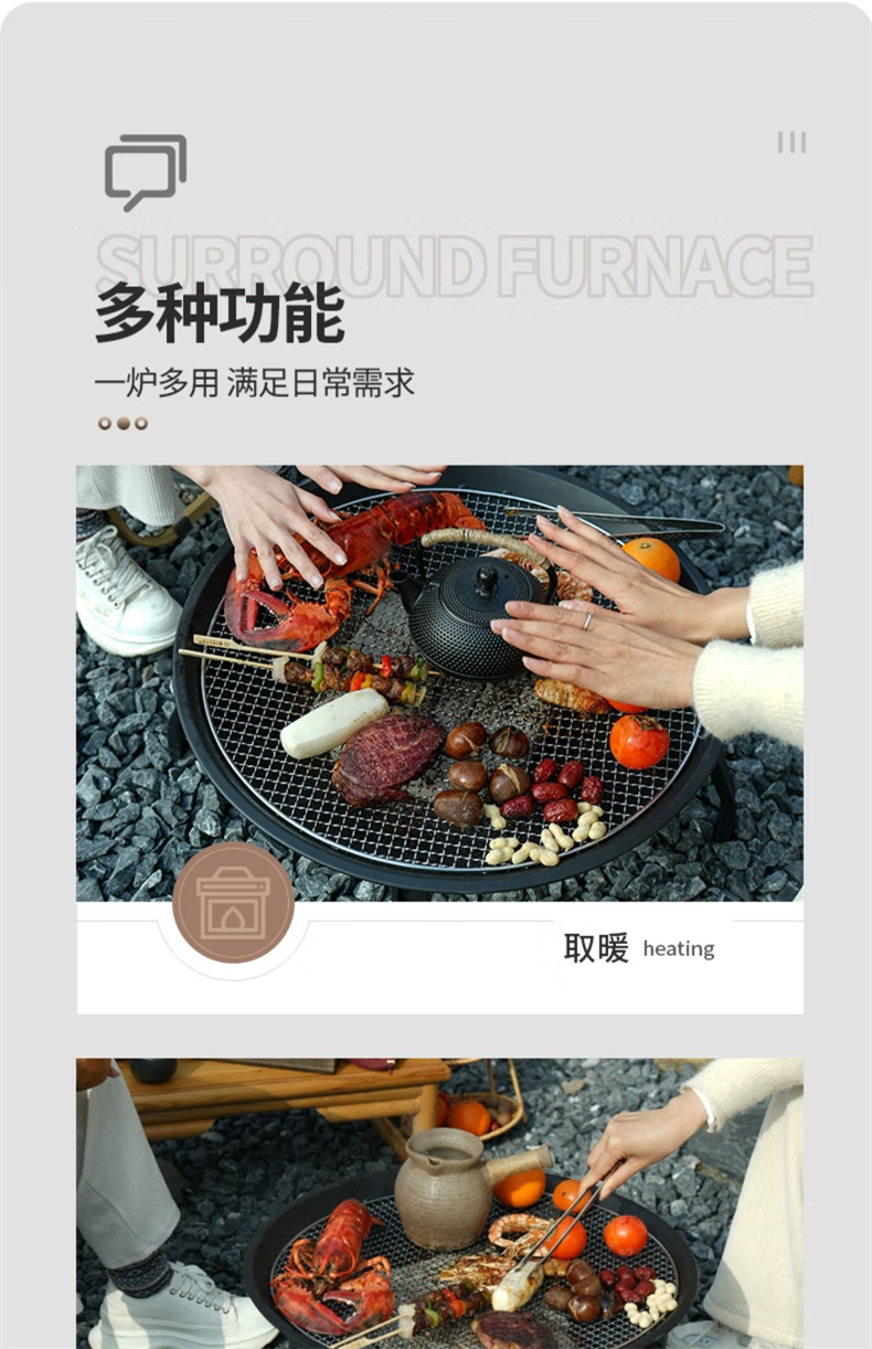 室内室外:都很好看。 用料材质:没有问题,已经用了两周。 适用人数:3-8人,围炉烤火,很舒服。 重量大小:不重,可以手拿,还多方便的。