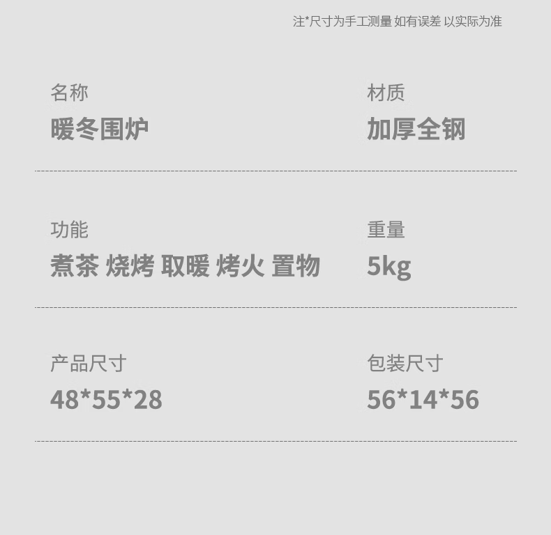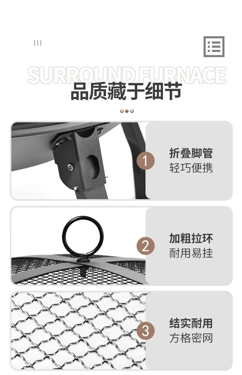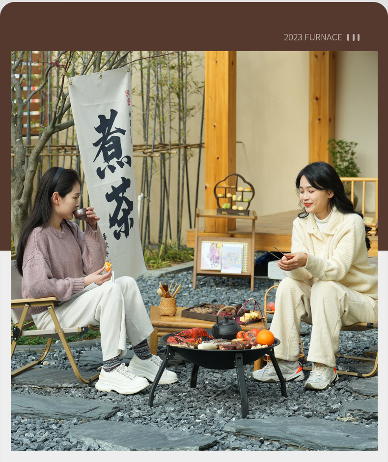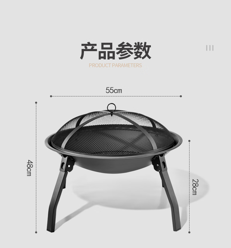 室内室外:都很好看。 用料材质:没有问题,已经用了两周。 适用人数:3-8人,围炉烤火,很舒服。 重量大小:不重,可以手拿,还多方便的。