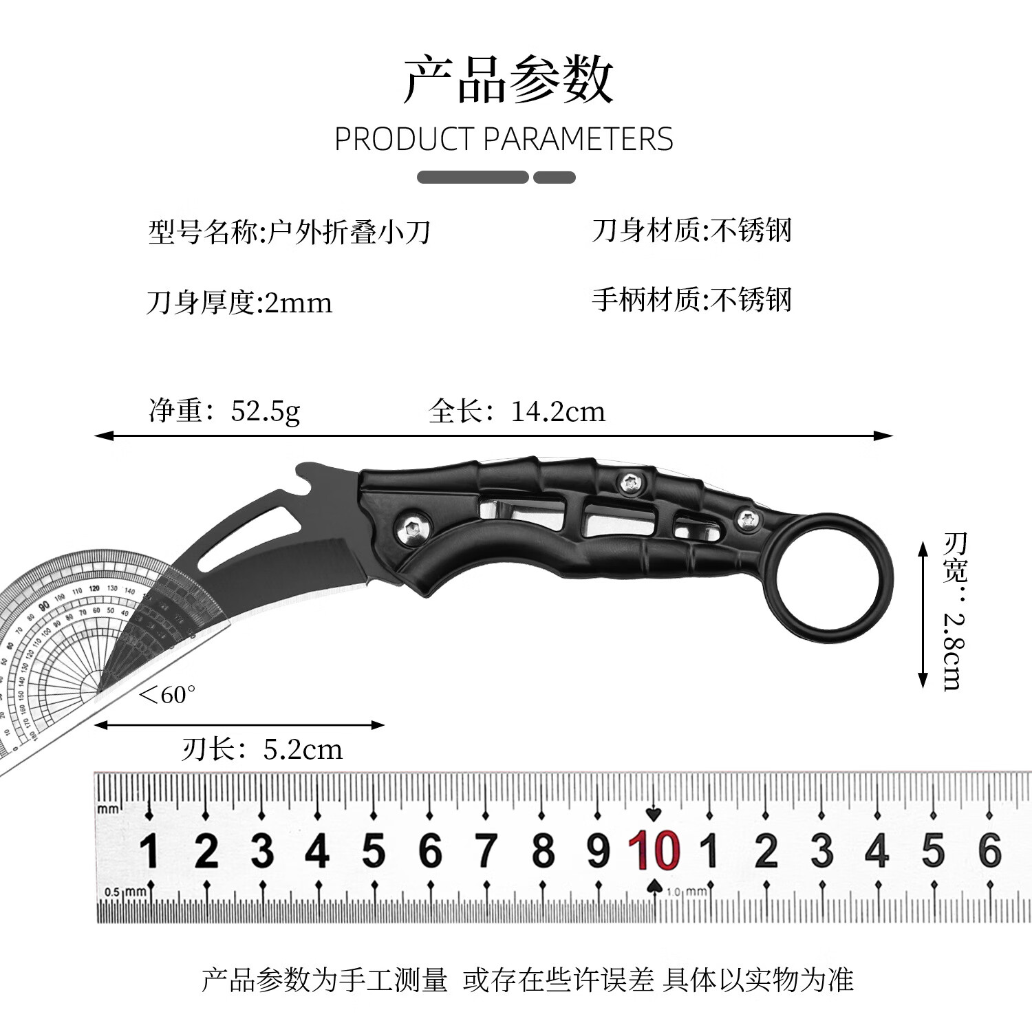润华年折叠水果刀弯刀弯头便携小弯刀月牙不锈钢爪刀挂钥匙扣挂件开快递 黑色一把 60°以下 x 6.5cm x 85mm