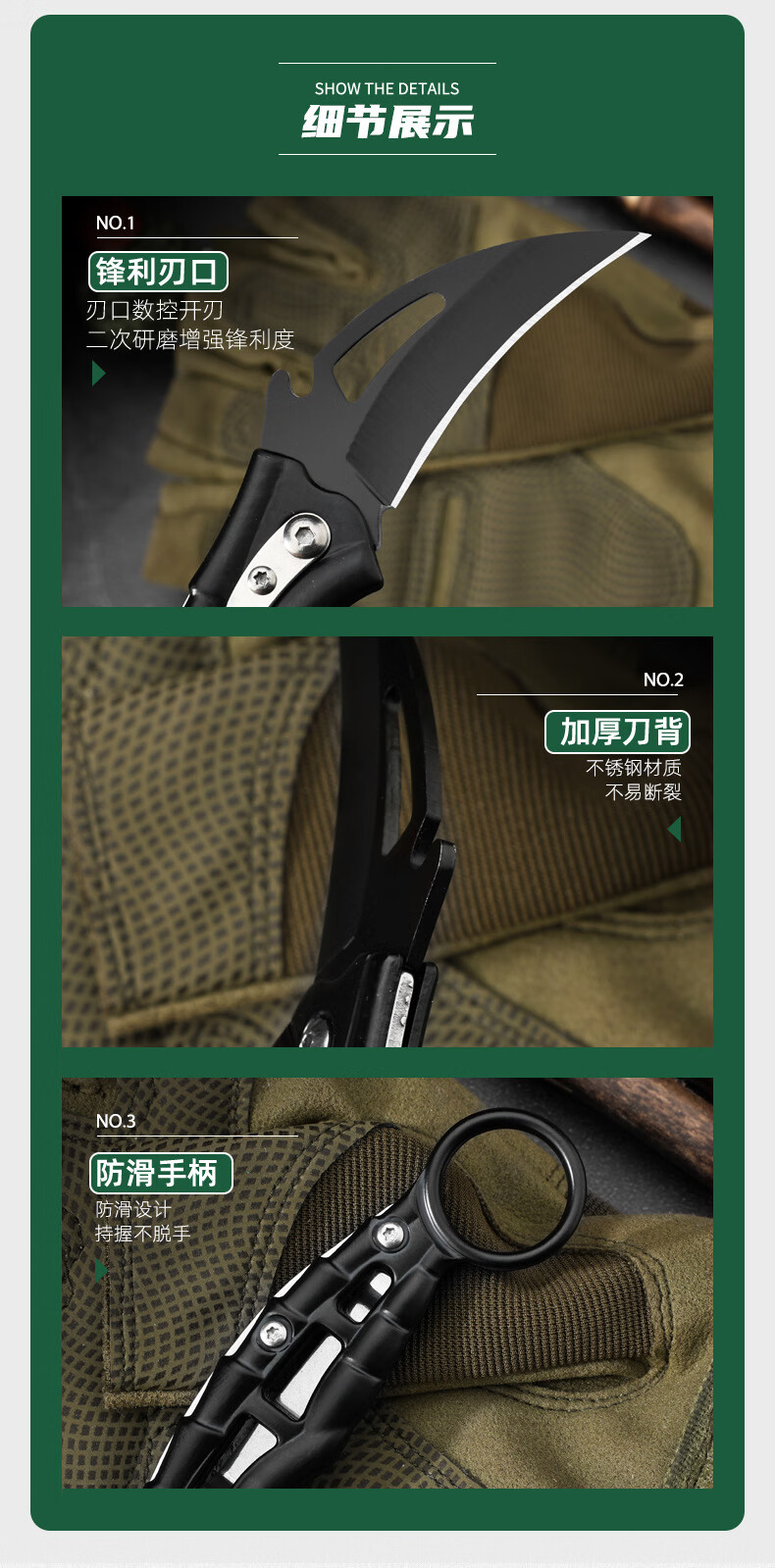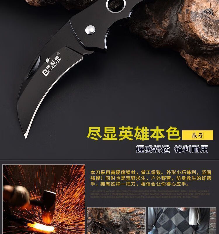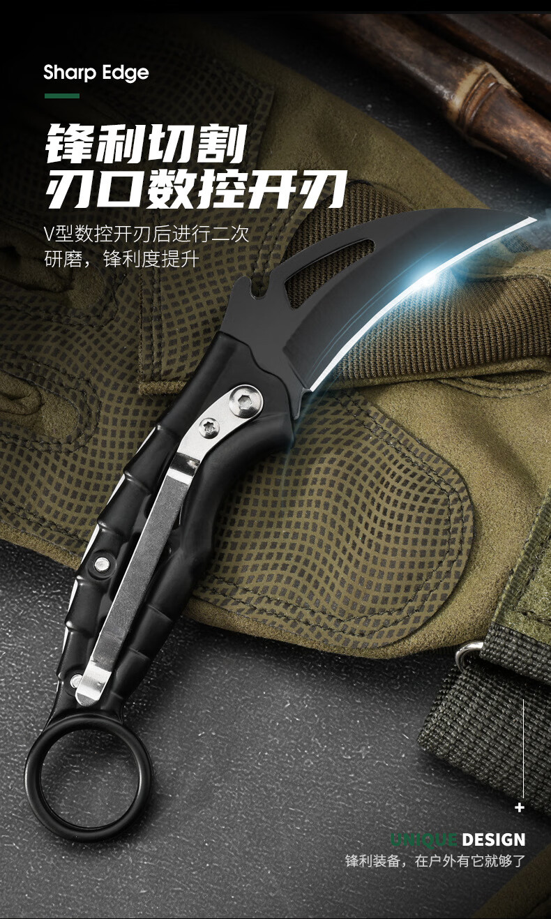 便携折叠爪刀户外防身鹰爪刀战狼小弯刀具随身野外露营求生爪子刀 鹰爪