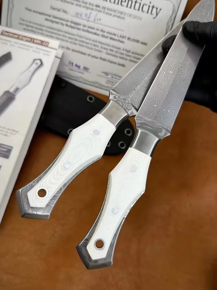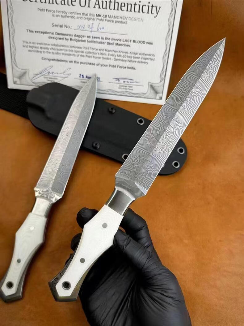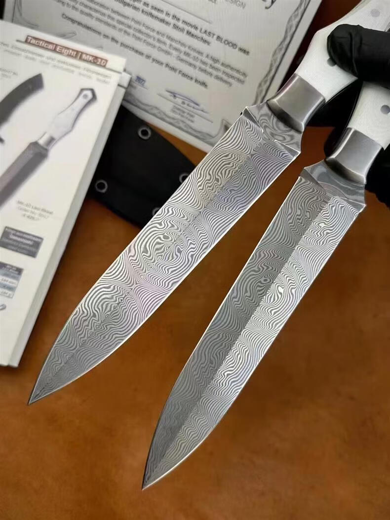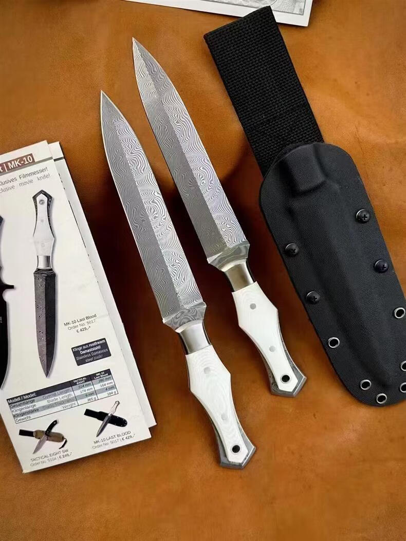 兰博MK10双刃大马士革钢户外求生多功能高硬度便携战术防身露营刀 标准