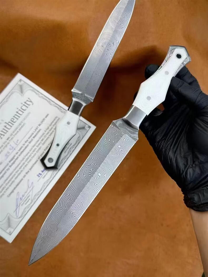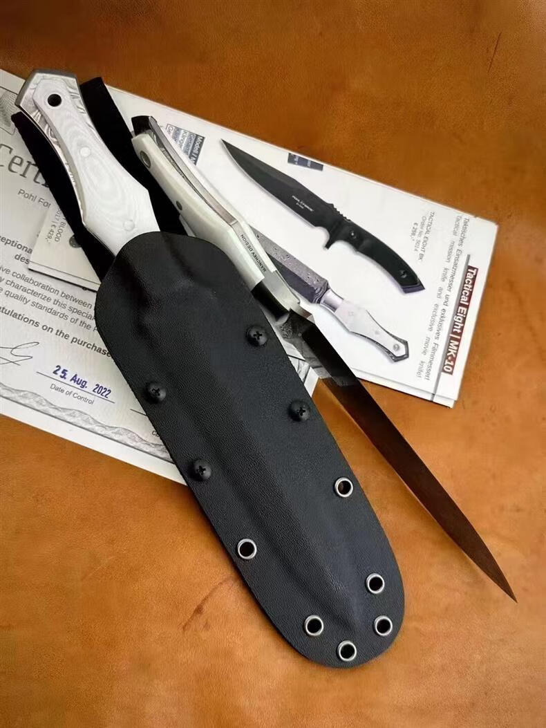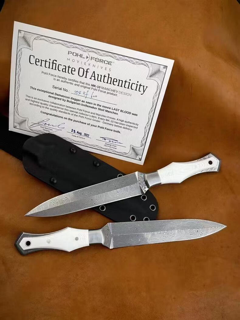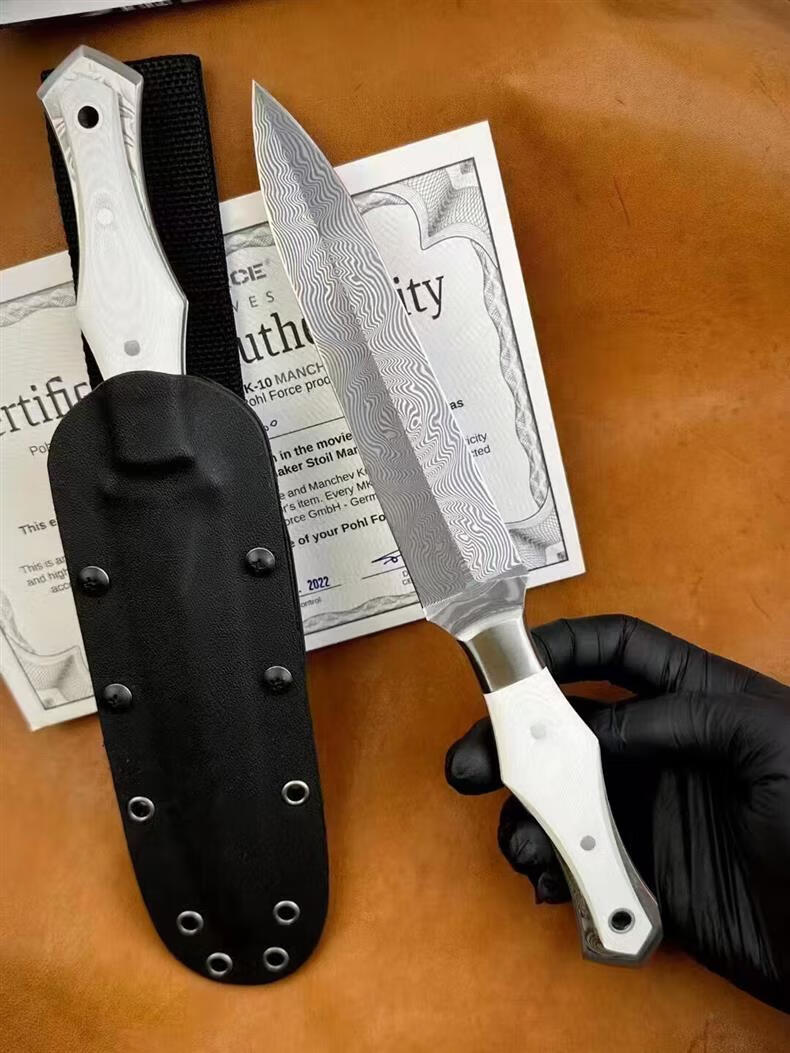 兰博MK10双刃大马士革钢户外求生多功能高硬度便携战术防身露营刀 标准