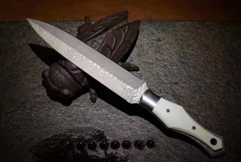 雨轩户外瑞典钢锻打拼接櫻花纹直刀户外小刀扭纹钢打造前后护手組合手柄