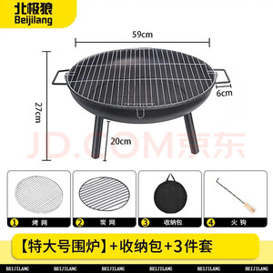北极狼围炉煮茶家用庭院室内烤火盆煮茶烧水冬季户外露营烧烤取暖烤火炉 【43cm围炉】+收纳包+5件套
