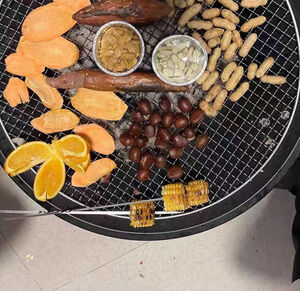 小幸福烧烤炉烤肉家用煮茶圆形烤火木炭户外多功能烤炉 22cm烧烤炉+烤网+木托盘