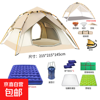 帐篷户外野餐露营便携式可折叠自动弹开防雨黑胶公园野外野营装备 四人充气床套餐 米白色 3-4人