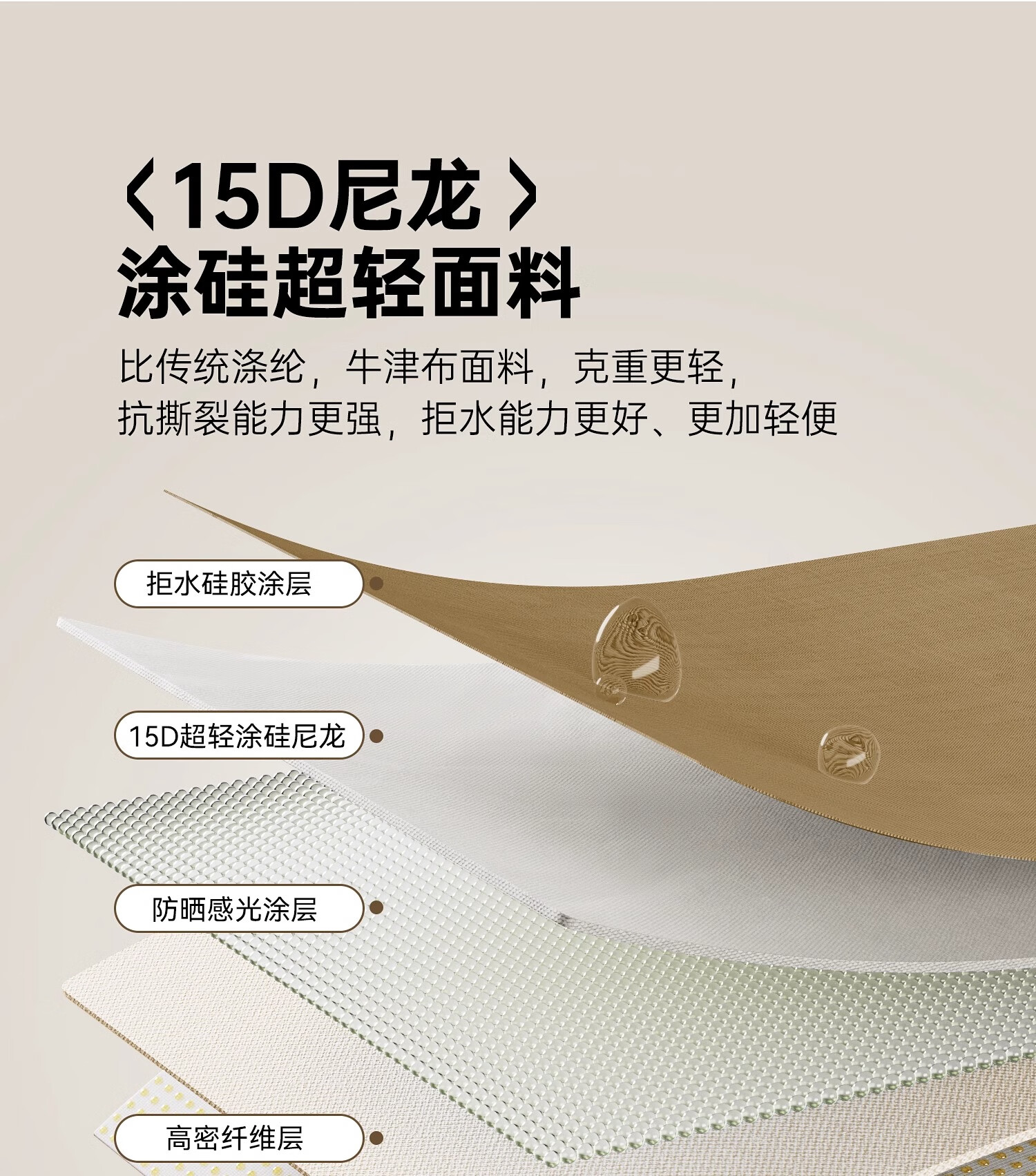 轻便空间大,收放改进很便利。舒适,通风设计好。做工材质物超所值。两个人也很宽敞,收起来也不占用空间。