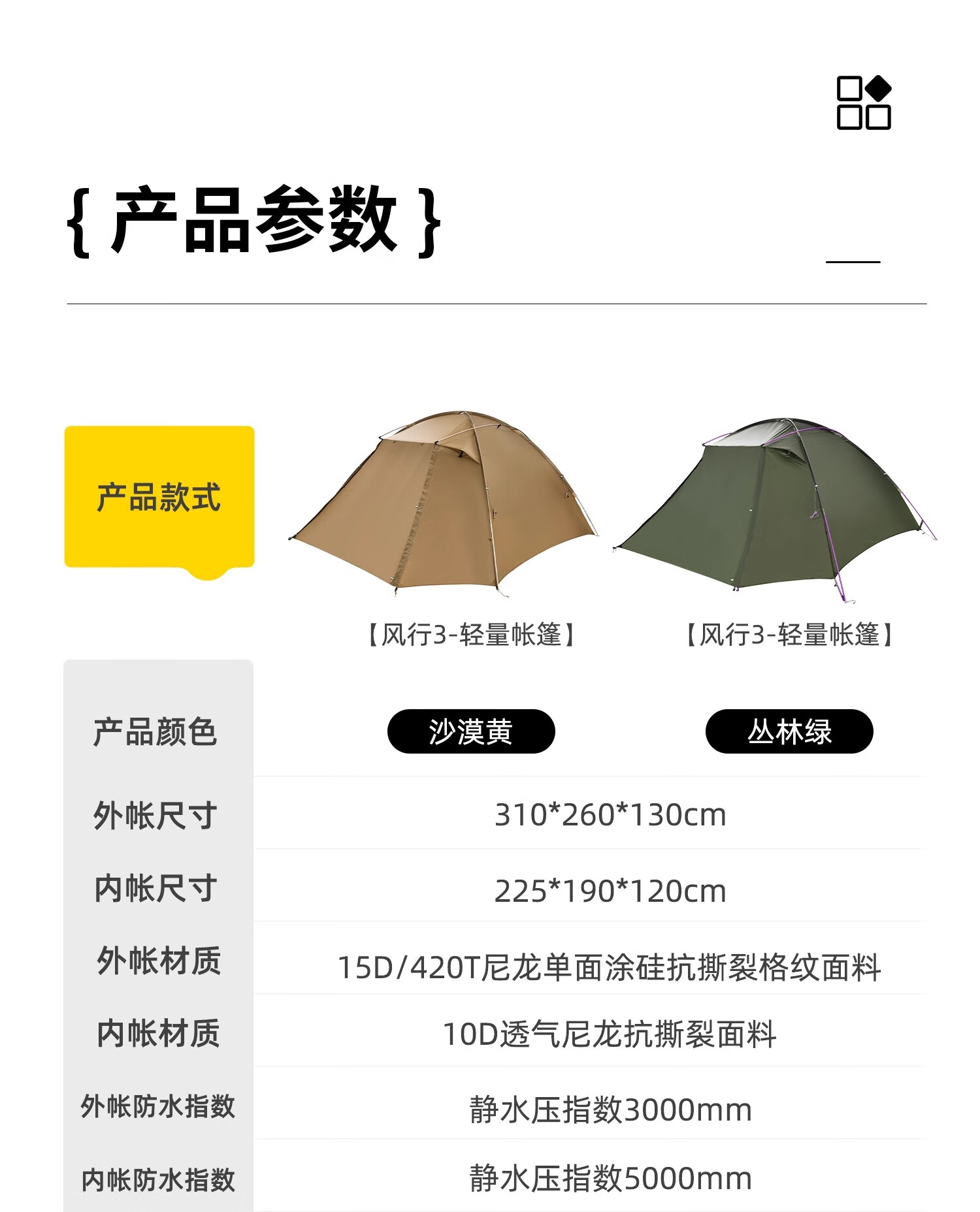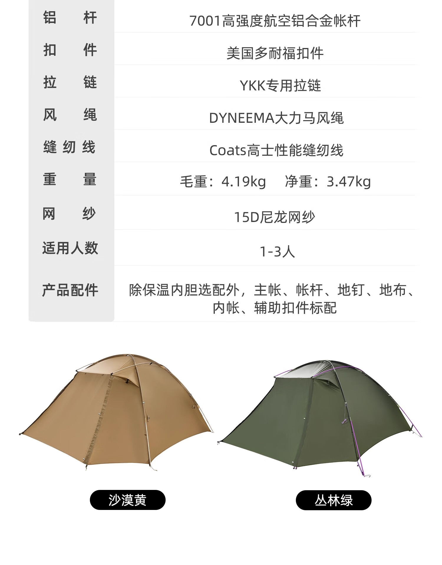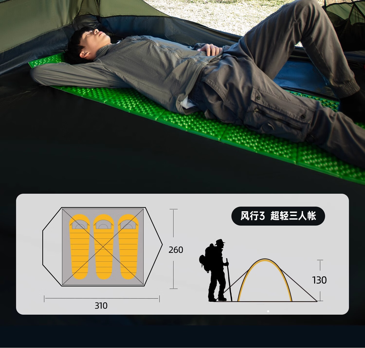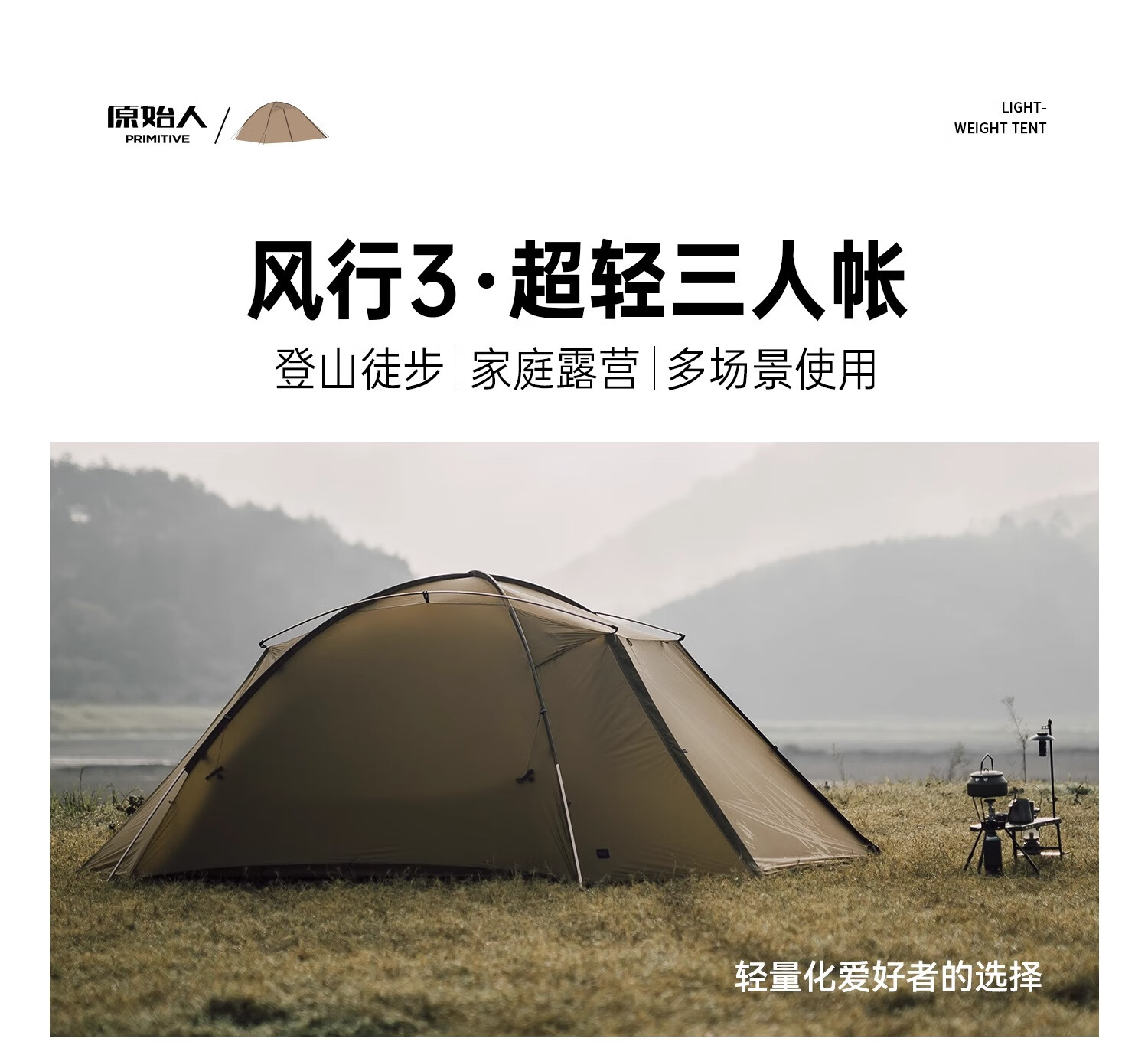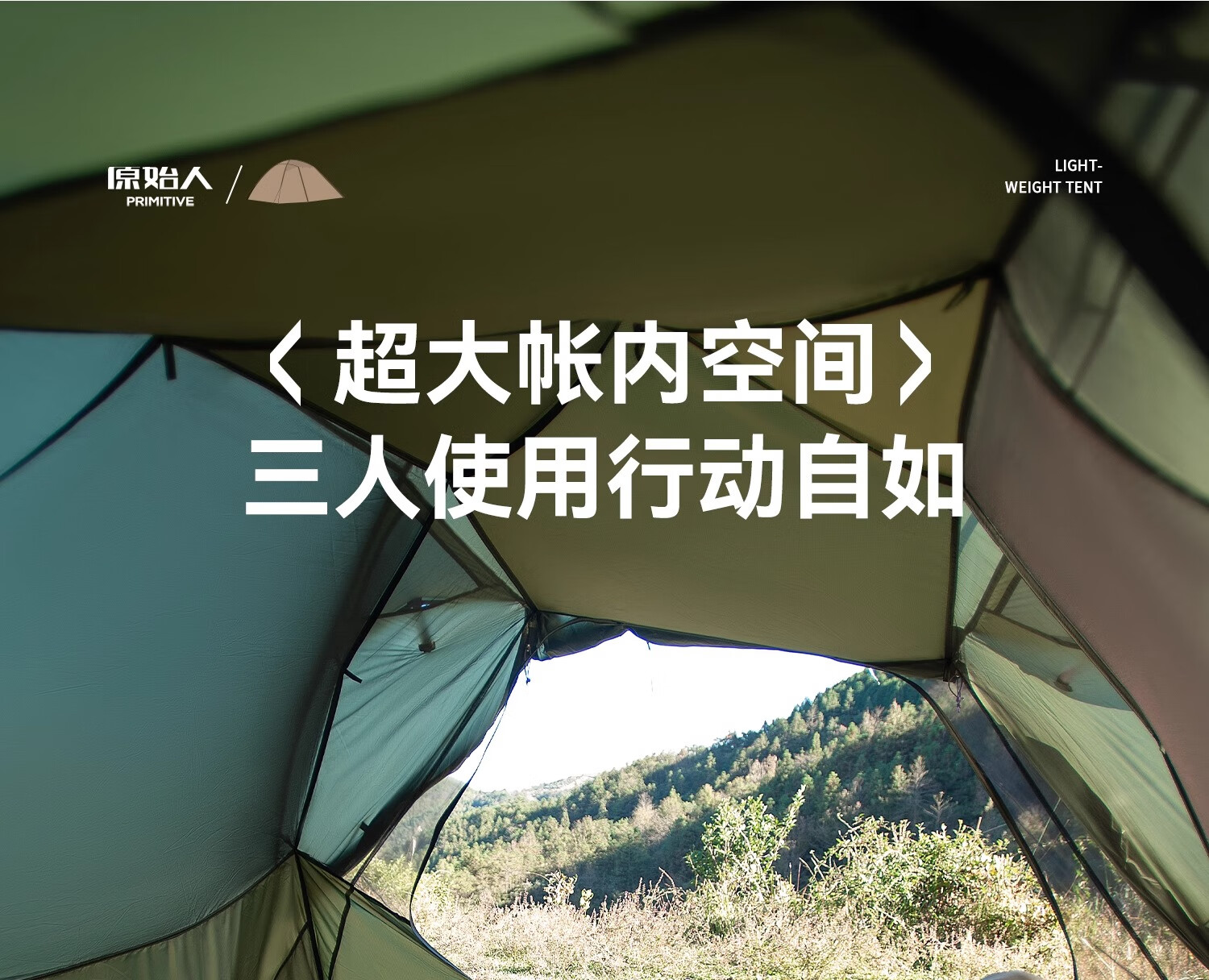 原始人风行3帐篷户外徒步轻量化专业登山三季帐超轻露营野营露营 风行3丛林绿