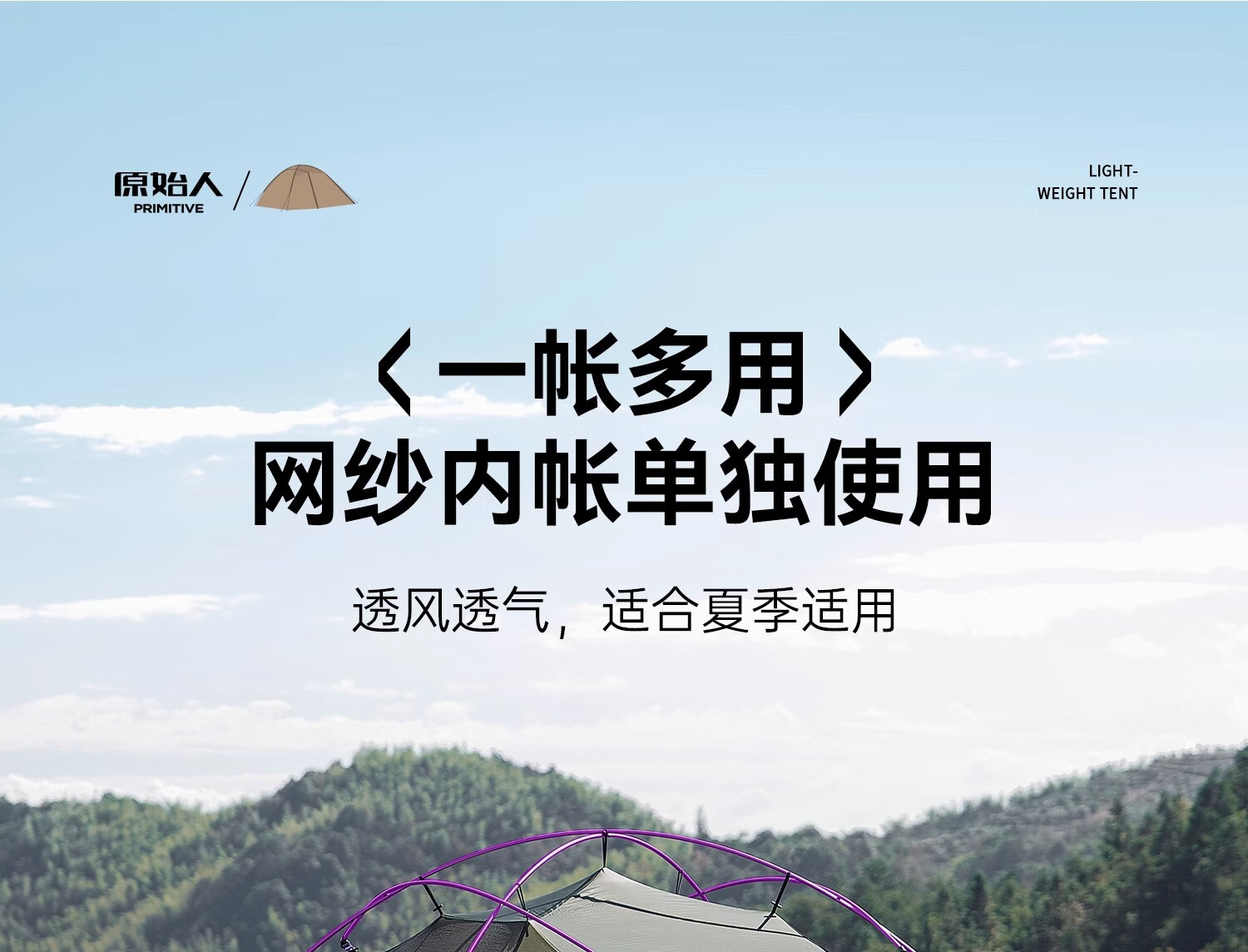 这款帐篷非常适合户外露营使用,收纳方便,质量可靠,防水性能优秀,而且能防风。在户外,再也不用担心淋雨了。值得推荐。原始人品质一流。