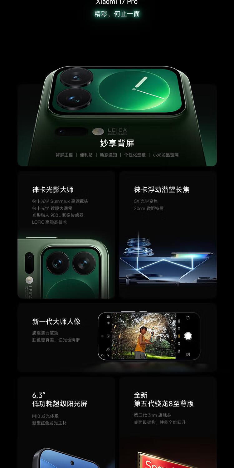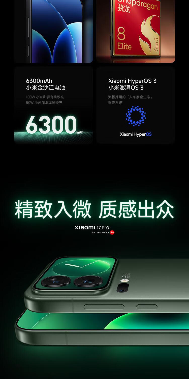 小米(MI)17Pro 展机 第五代骁龙8至尊版 光影猎人950 6300Ah大电池 白色 16GB+512GB