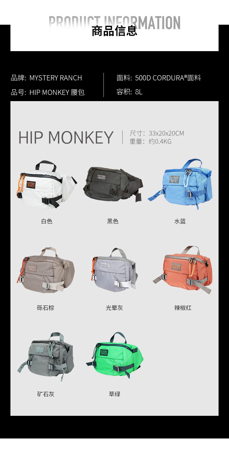 MYSTERY RANCH神秘农场 城市户外休闲运动HipMonkey叶猴8L跑步腰包背包骑行挎包 黑色