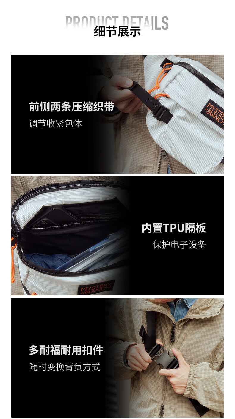 这款腰包买来徒步户外的时候用的,也可以作为单肩包,使用简单方便好用。表面防水功能做的很好,特别是拉链部分也做了防水功能。
