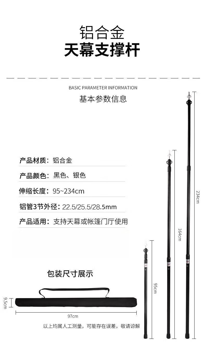 驴小贝户外露营天幕杆加粗铝合金可伸缩调节门厅支撑杆架帐篷配件 2.3米银色1根