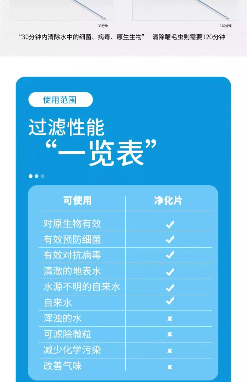 KATADYN瑞士康迪Befree 6L轻量化露营徒步自驾净水袋水过滤户外净水器 MC 1T 1板25粒 净水片(拆零无盒)