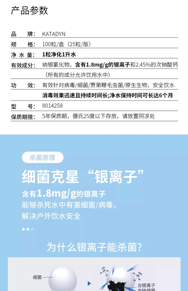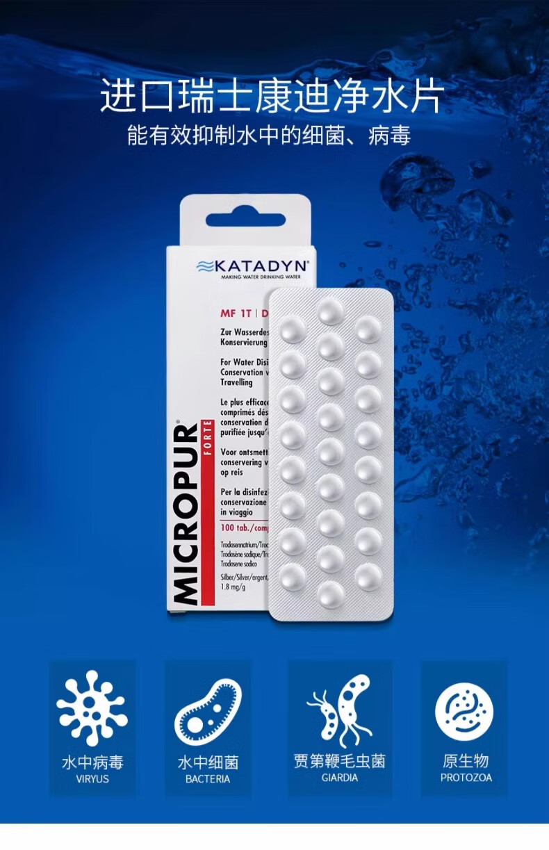 KATADYN瑞士康迪应急物资净水片家用饮用水消毒片户外探险野露营出游必备