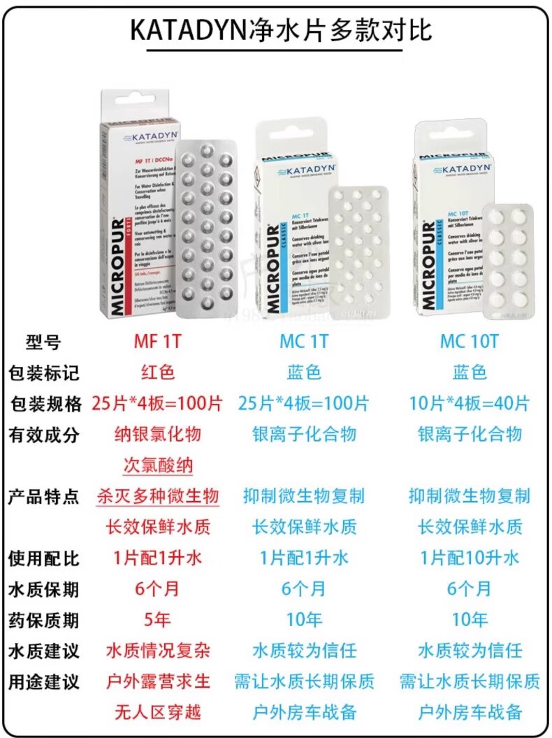 KATADYN瑞士atadyn康迪水质净化户外应急净水片MC系列1T10T100P MC1T1盒100粒