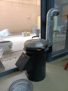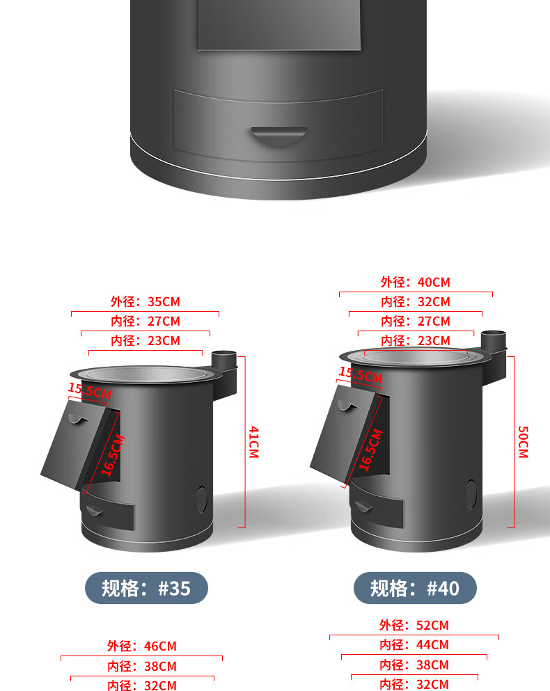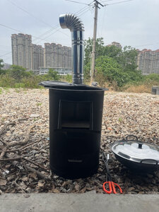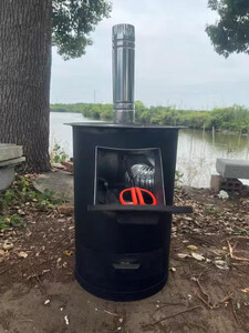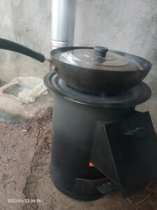 柴火灶家用农村无烟烧木柴新型大锅台室内取暖炉子移动户外多功能 35#新黑圆桶+34炒锅40cm管配件